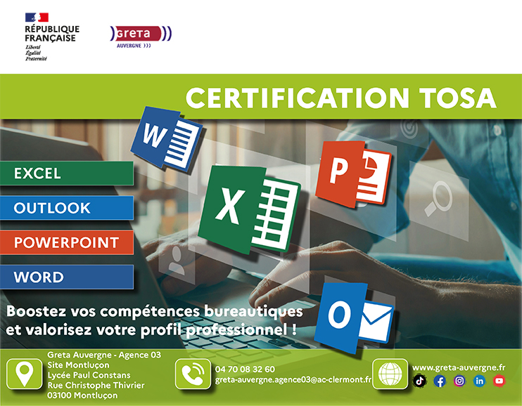 Le GRETA Auvergne propose des parcours individualisés de formation afin de vous aider à préparer la ou les certifications TOSA correspondant à vos besoins. Éligibles au financement par votre compte personnel formation, ces modules vous permettront d’actualiser et de remettre à niveau vos compétences en bureautique avant d’effectuer le test en toute sérénité dans nos locaux.