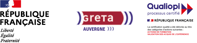 Le GRETA Auvergne est certifié QUALIOPI depuis 2024 pour les catégories « Actions de formation » et « Validation des Acquis de l’Expérience (VAE) », attestant de notre conformité aux exigences du Référentiel National Qualité.