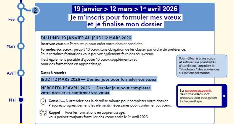 Mercredi 1er avril 2026 : dernier jour pour finaliser votre dossier et confirmer vos vœux.